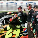 At the outset of the Coca-Cola 600, Jeff Gordon struggled with handling, but he fully expected the handling on the #24 to be dialed in after nightfall. However, the car never performed to Gordon’s expectations and finished 15th in his final start in NASCAR’s longest race. At the front of the field, Carl Edwards scored his first win of the season and 24th of his career.